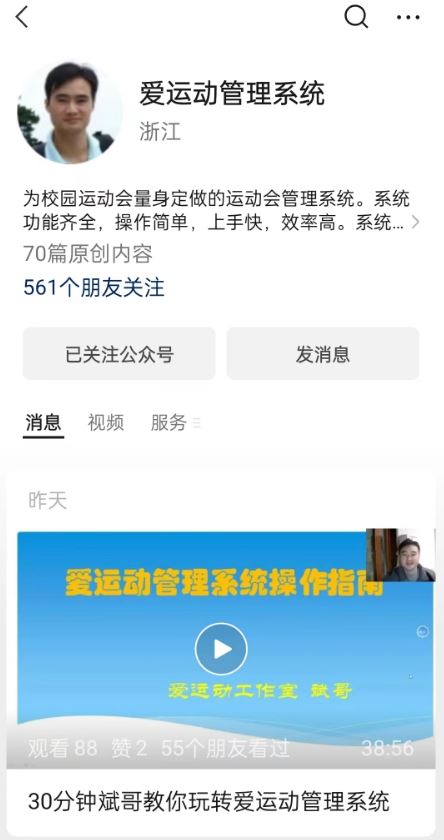 4. 关注“爱运动管理系统”微信公众号(igamesys),观看演示视频和操作文档,学习系统操作方法。 |